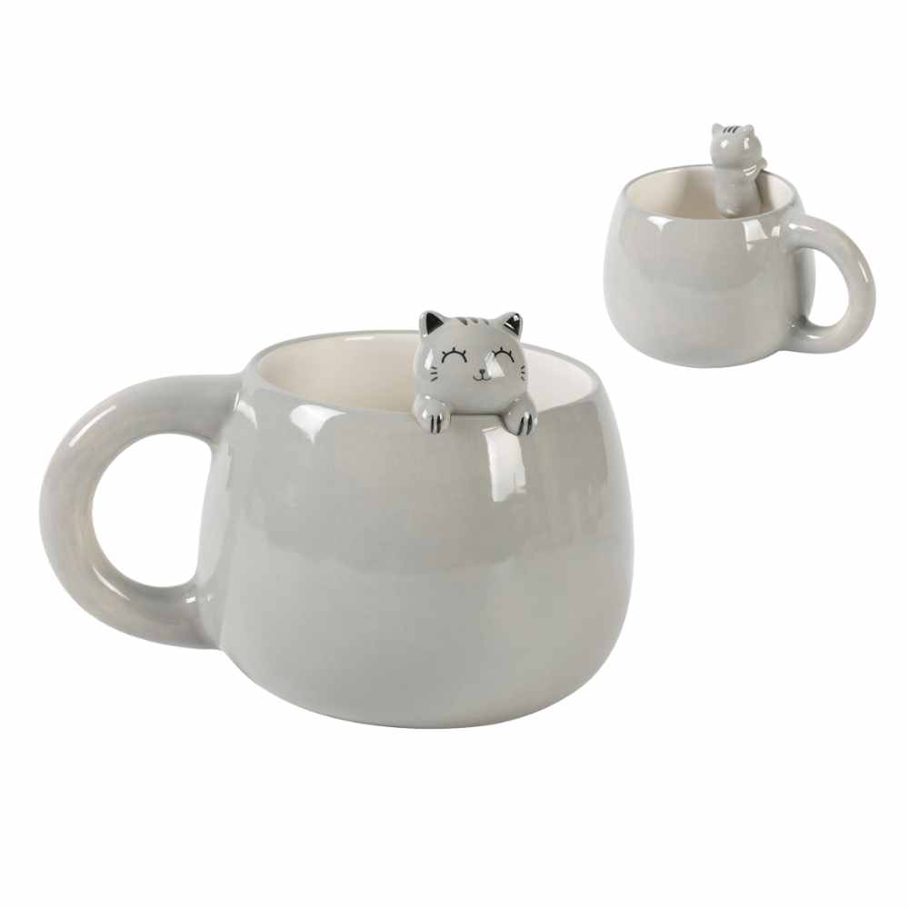 Home Casa Food & Beverage Tazze e Tazzine Tazza Mug Charm Cat Grey